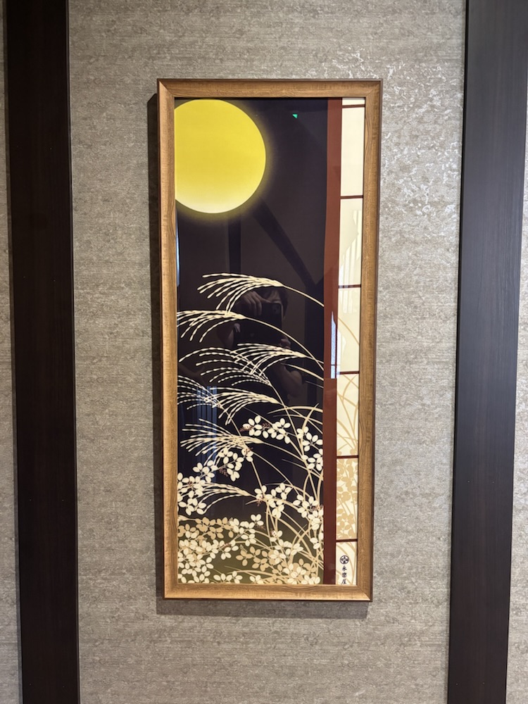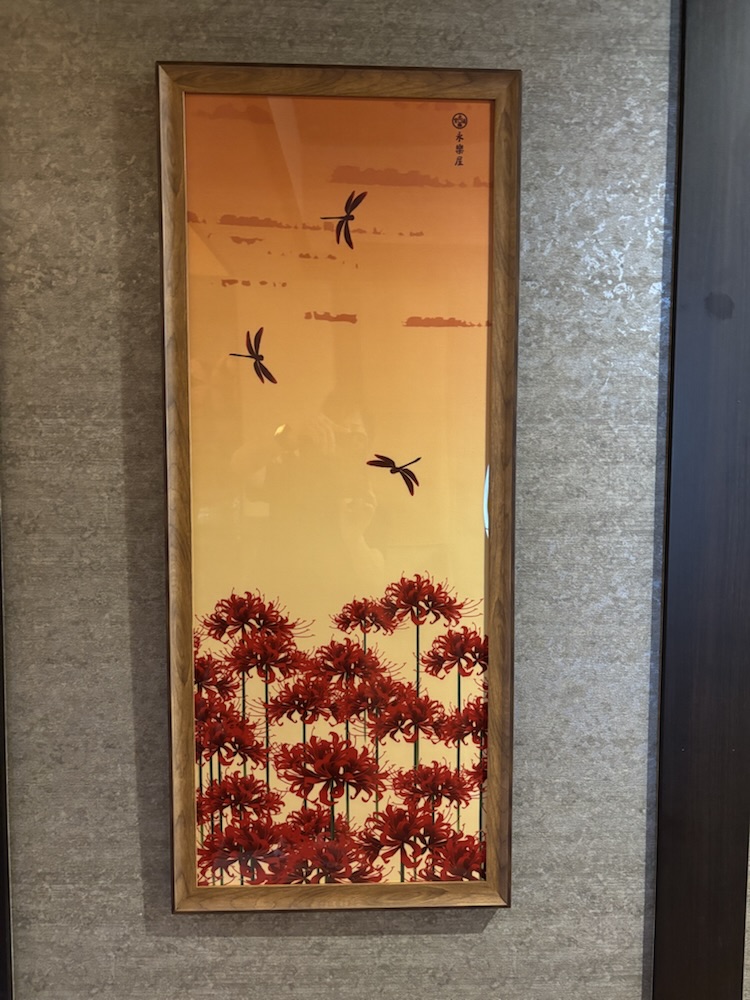 さて、キズナガーデン神谷のエントランスには京都「永楽屋」さんの秋の手拭いアートを飾りました🖼️