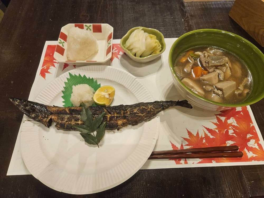 2025/11/07 芋煮会開催しました♪ こんにちは!キズナガーデン神谷です。 今年も恒例の秋の収穫祭🍂 「芋煮会」を開催しました♪ すすきやもみじ🍁を生花に🍂 三陸沖の特大秋刀魚✨ 絶対に炭火焼きです! 俺に任せてください✨ 秋刀魚の脂で溢れました🔥 前日から煮込んだ「芋煮汁」 スタッフの田んぼから収穫された新米🌾コシヒカリ✨の塩🍙 絆自家製!!白菜漬け🥬 秋の味覚定食🍁 デザートも秋色🍁 召し上がれ〜♡ 皆さんの「美味しい笑顔✨」 をいただきました〜✌️ « prev next »