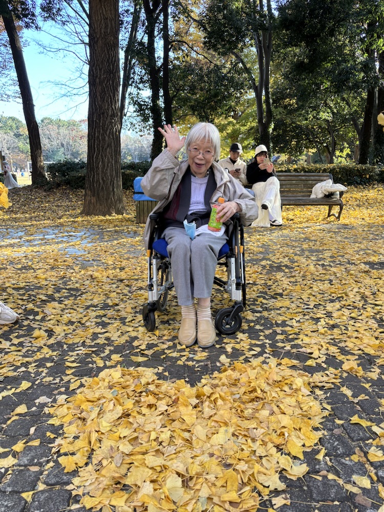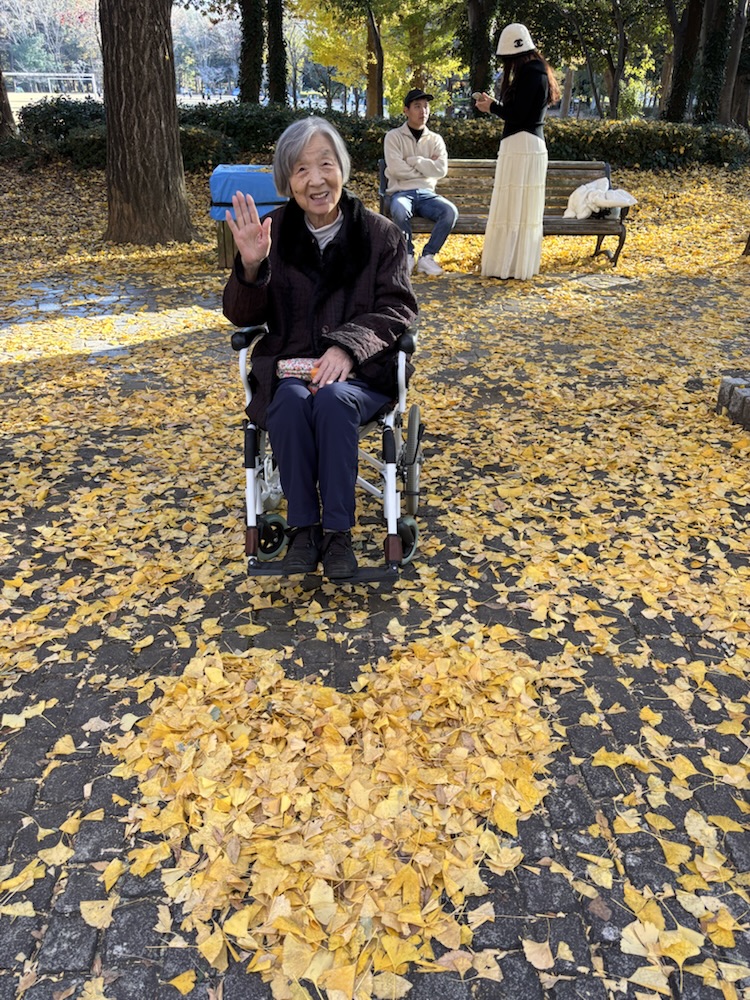 2025/11/24 紅葉ドライブ🍁3 世は連休最終日!! 本日の紅葉ドライブは「同峰公園🌲」最高の天気に恵まれました☀️ ベストショット📷仲良しご夫婦✨ イチョウの落ち葉で♡ 100歳❣️シルバーカーでしっかりとした足取りでご満悦でした!! 絵になりますねー♡ next »