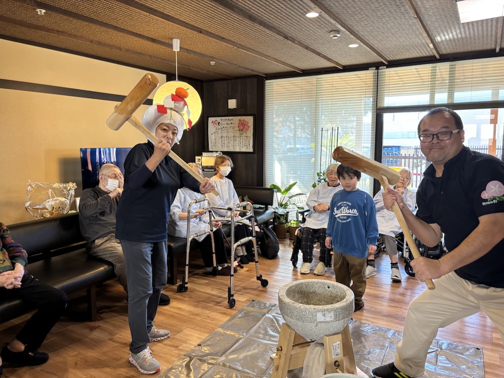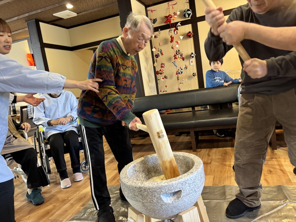 2025/12/26 餅つきだよ!全員集合! ヨイショ〜 それ行け〜 危ねぇー💦 三世代ヨイショ! お上品にヨイショ♡ 社長も施設長も張り切って! ヨイショ〜 楽しいね😃 キズナガーデン婦人部♡ 定番のあんこ、きなこ餅✨ 和菓子屋さんの様な出来栄え✨ 美味しかったです♪ « prev next »