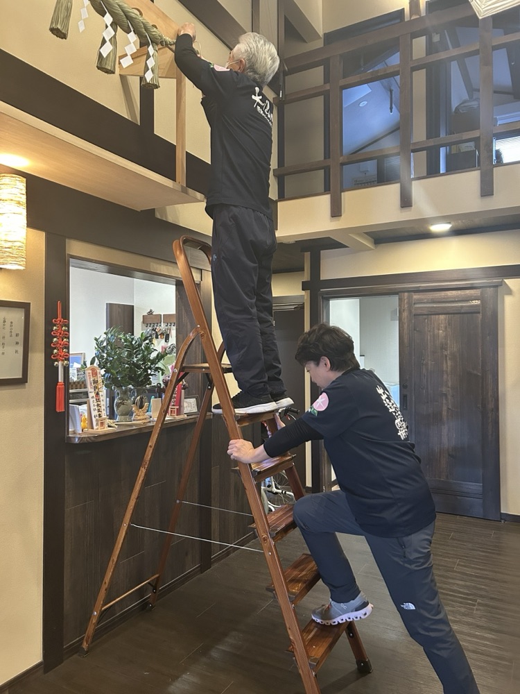 2025/12/28 しめ縄飾り🎍 今年も残りわずかとなりました。 キズナガーデン神谷、刈谷では、新年を迎える準備が整いました✨ 高い所の作業は慎重に! しめ縄をリニューアルしました! ひと回り大きなしめ縄を発注しました! 伊勢地方のしめ縄飾り 来年は「午年」です🐴 刈谷のしめ縄飾り✨お上品✨ しめ縄は、神様が宿る神聖な場所と、普通の場所とを区別するための飾りで、これがあると悪いものが入ってこないように境界を張るという意味があるそうです。 新しい年が良い一年になるように、願いを込めさせていただきました。 « prev next »