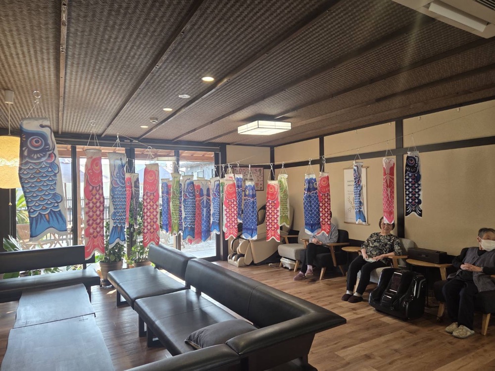 2026/04/29 五月の節句🎏飾付け 天気の良い日はテラスでティーパーティ🫖✨ そして、五月の節句の飾付け! ホール内にたくさんの🎏を飾りました‼️ いつも本気なキズナガーデン✌️ « prev next »