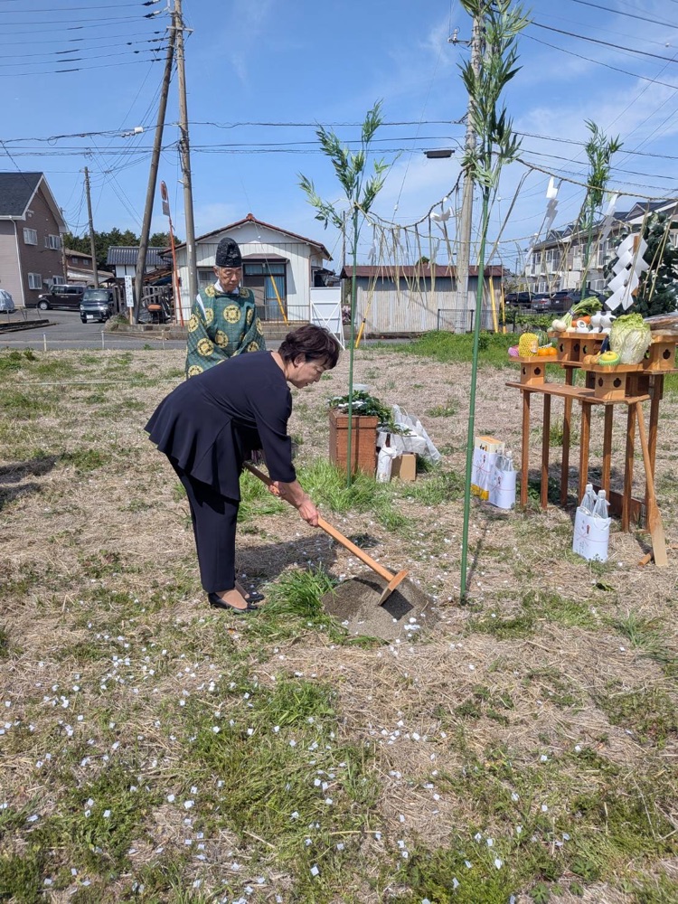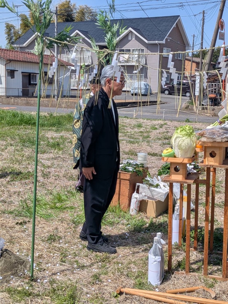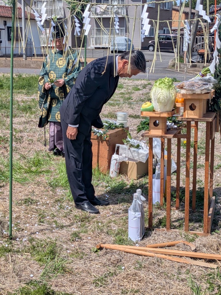 晴天の下、キズナガーデン阿見新築工事の地鎮祭を執り行いました。