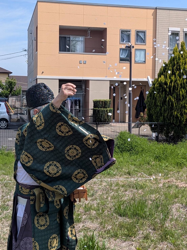 地鎮祭は、その土地の神様に工事の安全と建物の繁栄を祈る儀式です。